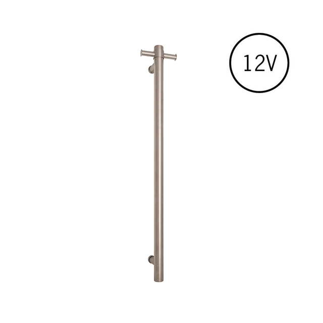 VS900HBR Brushed Round Vertical Single Heated Towel Rail