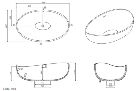 Waverly Matte White Solid Surface Stone Free Standing Bath 1800mm*1100mm*620mm