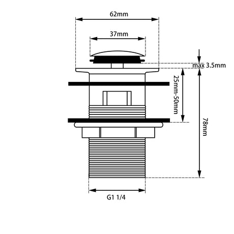 40mm Matt Black Pop Up Waste Universal Non Overflow