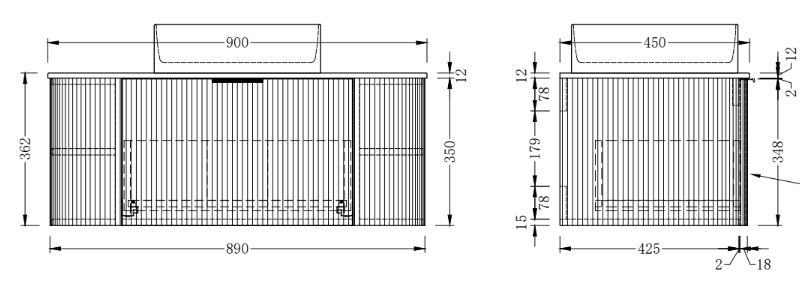 • Dimensions: 900 x 450 x 362mm