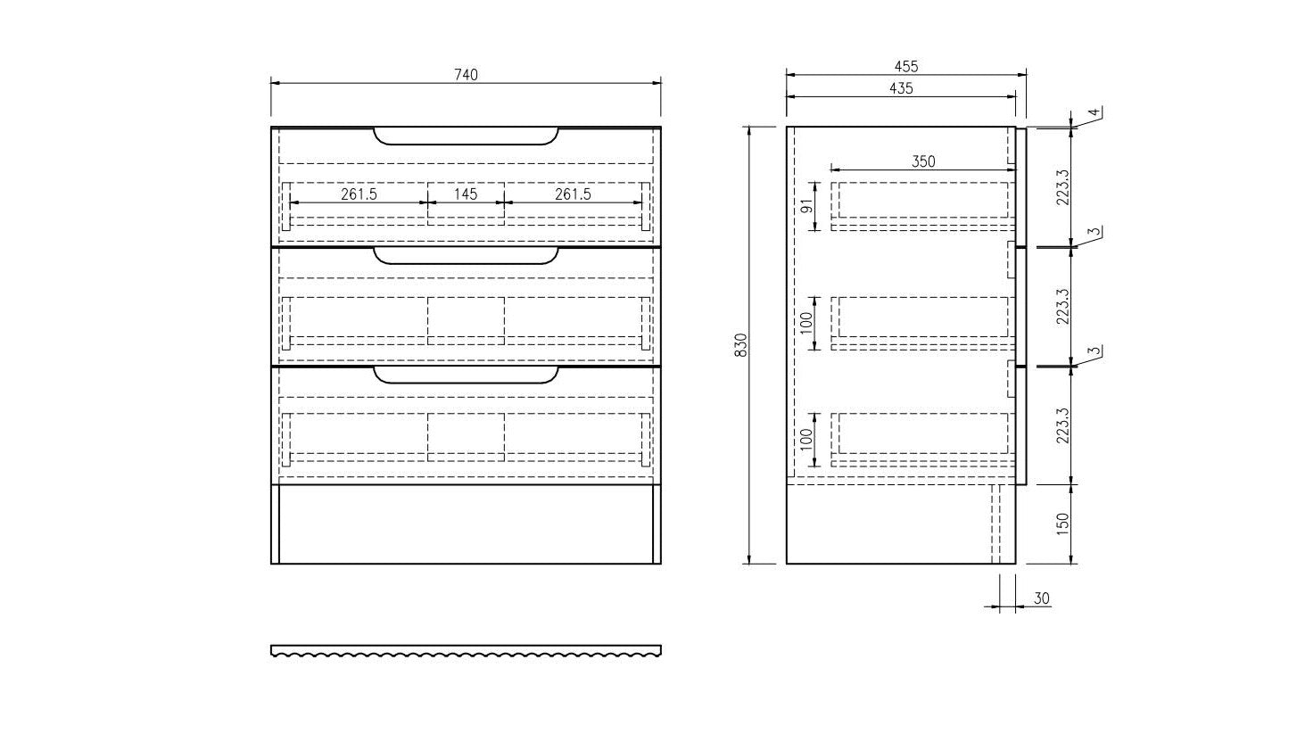 Effortless Handle-Free Operation - The three-drawer finger pull-to-open mechanism ensures easy access to storage. creating a clean. uncluttered look without traditional handles.
