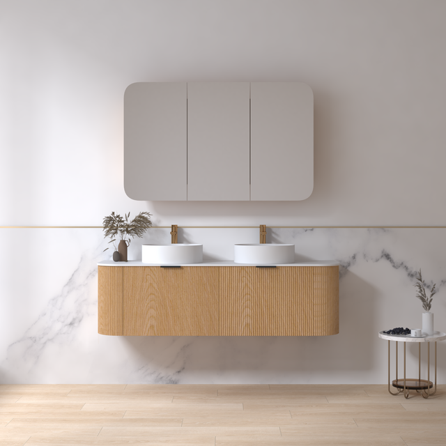 Adair Curved Fluted Wall Hung Vanity - Walnut Wood | 1500mm x 450mm