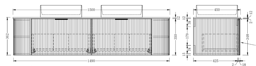 Adair Curved Fluted Wall Hung Vanity - Walnut Wood | 1500mm x 450mm is backordered and will ship as soon as it is back in stock.