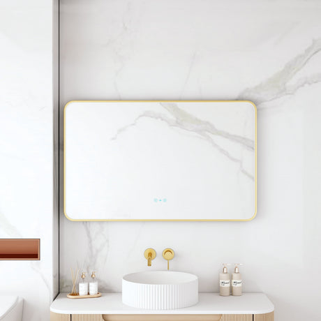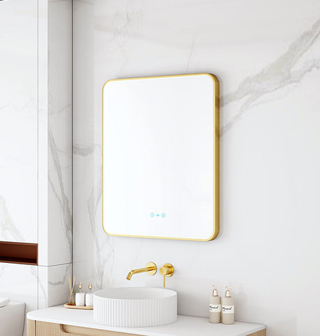 Maia 600×750 / 750×900 / 1200×750mm LED Rectangular Mirror – Brushed Gold Frame
