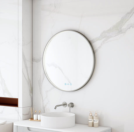 Maia 600/750/900mm LED Round Mirror – Brushed Nickel Frame