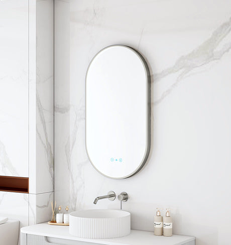 Maia 500×900mm LED Oval Mirror – Brushed Nickel Frame