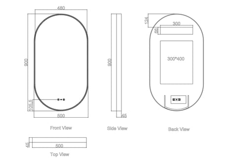 Maia 500×900mm LED Oval Mirror – Gun Metal Frame