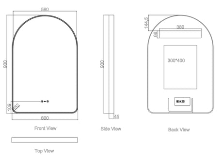 Maia 600×900mm LED Arch Mirror– Matt Black Frame