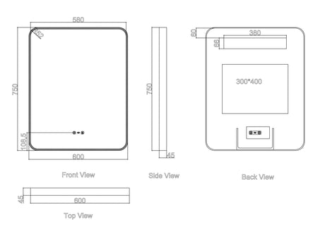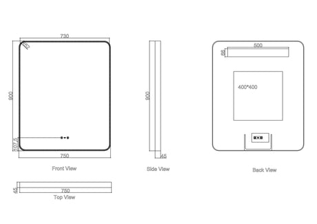 Maia 600×750 / 750×900 / 1200×750mm LED Rectangular Mirror – Gun Metal Frame