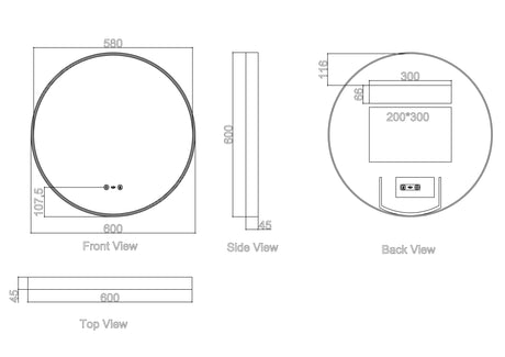 Maia 600/750/900mm LED Round Mirror – Gun Metal Frame