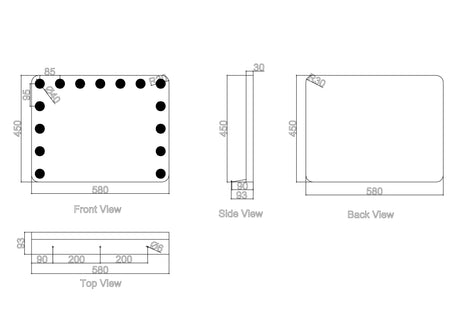 Luna 580×450mm LED Frontlit Makeup Mirror