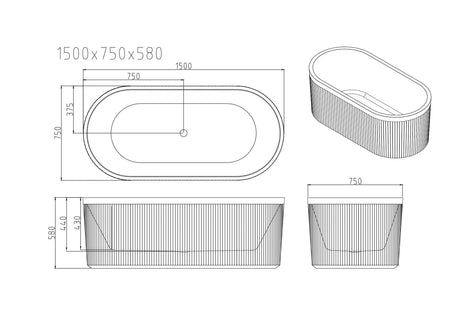 Oval Fluted Freestanding Bath 1500X750X580MM