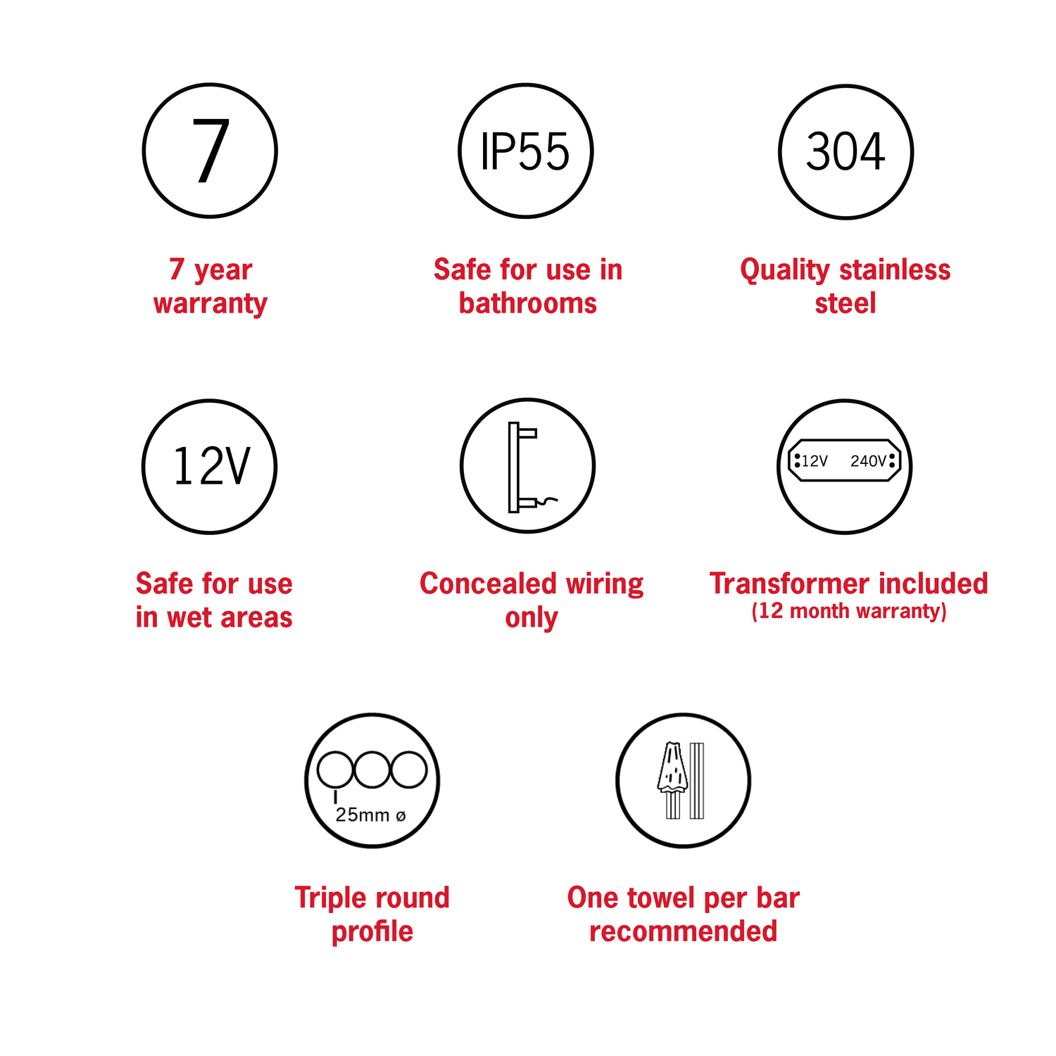 PLEASE NOTE: Specifications are for information purposes only. Whilst every effort has been made to ensure the product specifications are accurate, due to continuing product development and improvement the specifications are subject to change. Specifications can be used to rough in and fit timber supports in the wall however we recommend no holes are drilled without having the product on site or verifying the details with the manufacturer. Thermogroup cannot be held liable or responsible for errors due to updated specifications.