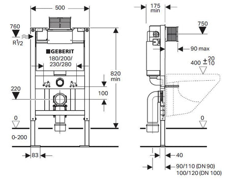 Mercio R&T 80mm Slim In-wall Cistern with Floor Pan