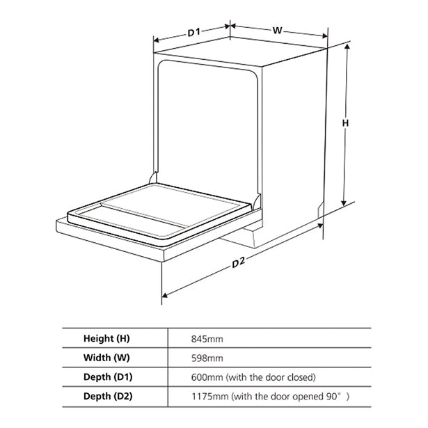 - Appliance dimensions H x W x D: 84.5 x 60.0 x 59.8 cm