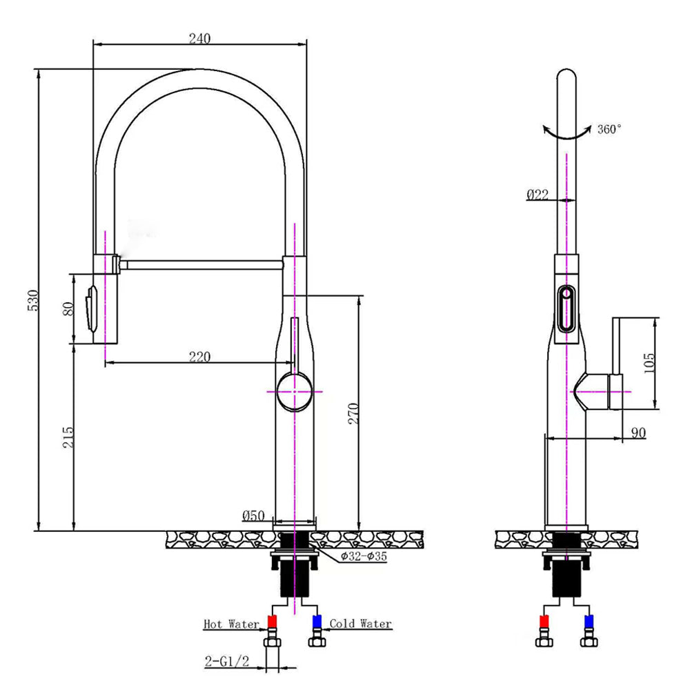 -Spout: Black Silica Rubber, 360 degree swivel spout