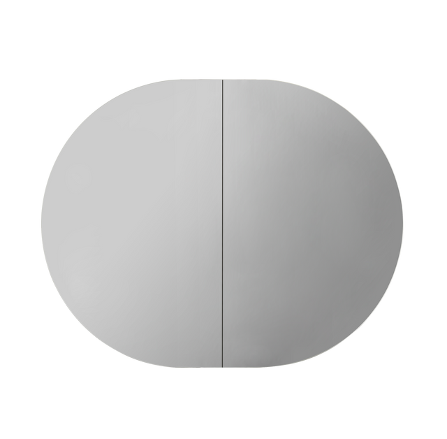 The Olivia minimalist mirror cabinet features an elongated oval shape for a contemporary look