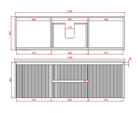 Brindabella Double Bowl Wall Hung Fluted Vanity 1500X455X480MM