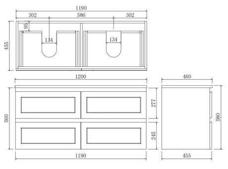 Fremantle Double Bowl Wall Hung Vanity 1200X450X560MM