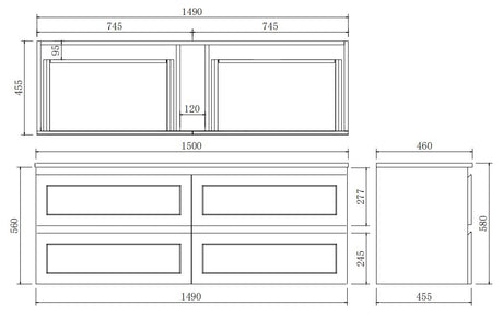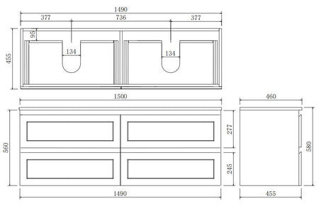 Fremantle Wall Hung Vanity 1500X450X560MM