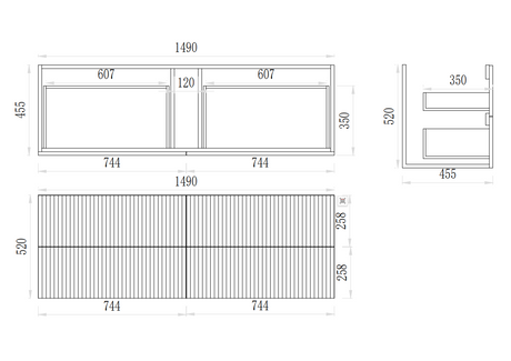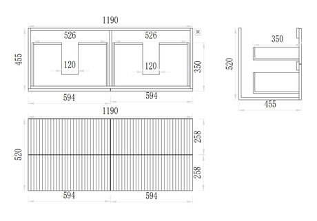 Fremantle Double Bowl Wall Hung Vanity 1200X450X560MM