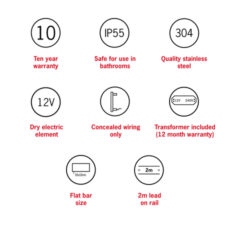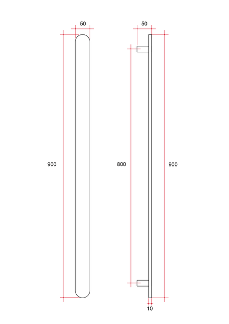 VP900 Flat Pill 12V Vertical Single Polished Heated Towel Rail