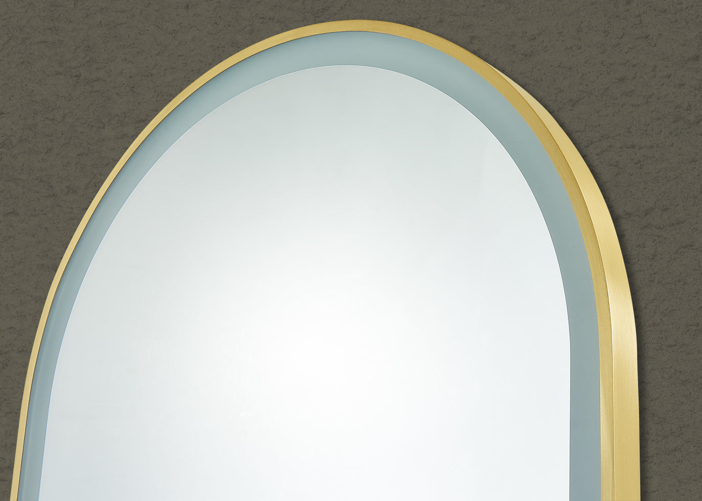 Aura Brushed Gold Arched Touchless 600 X 900 Framed LED Mirror - Three Light Temperatures