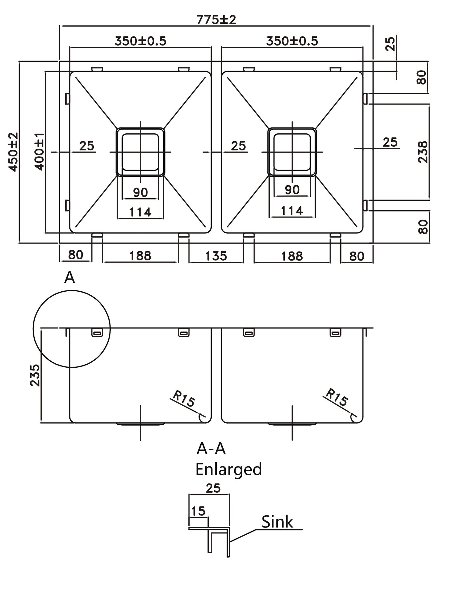 Stainless Steel Double Bowl Sink 775*450*235mm